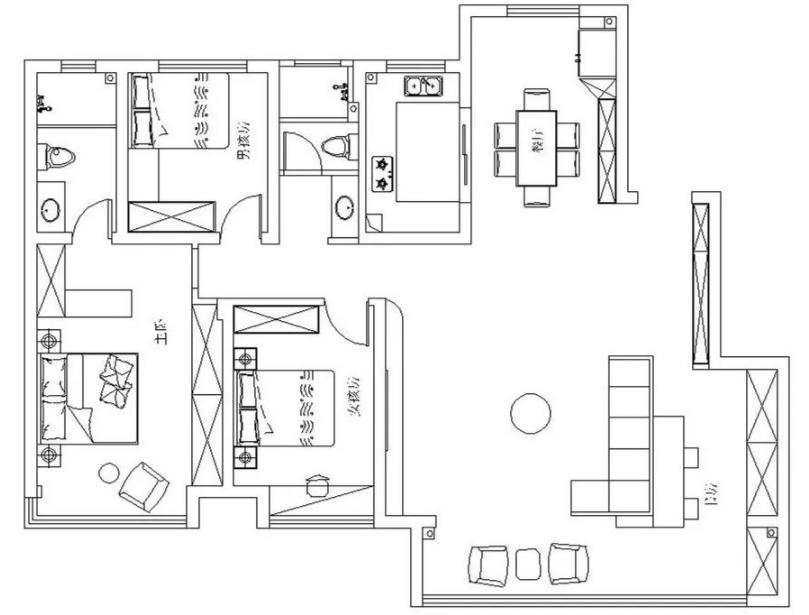 ▲ 屋主為追求客餐廳足夠寬敞舒適將四居室改為三居室。由於麵積足夠寬敞,所以每個空間都顯得格外寬鬆、舒適。在現代風簡潔的硬裝基礎上,加入舒適的軟裝和大氣的家具,營造出一個愜意、輕鬆的居住氛圍。