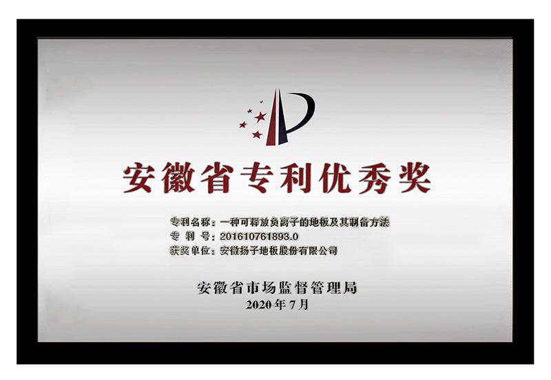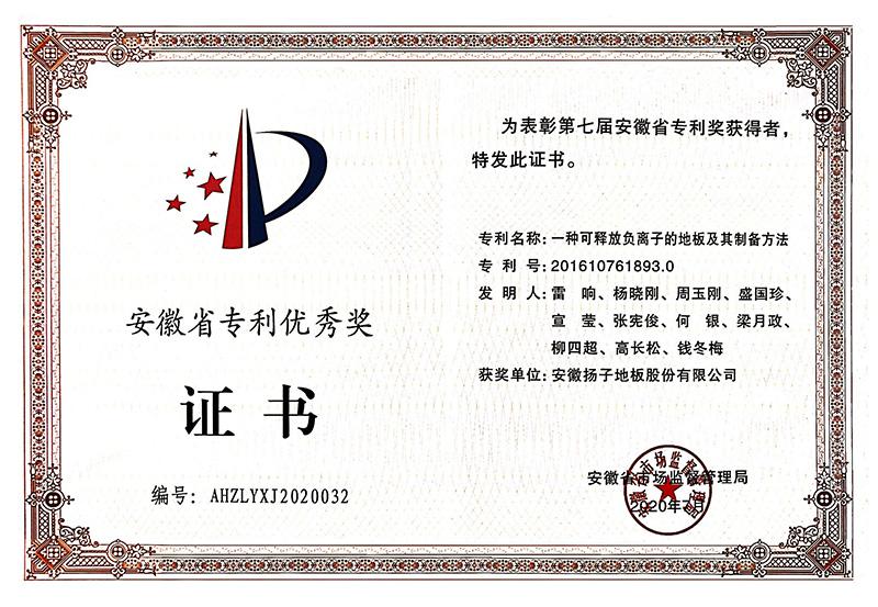 - 安徽省專利優秀獎證書 2020-11-06