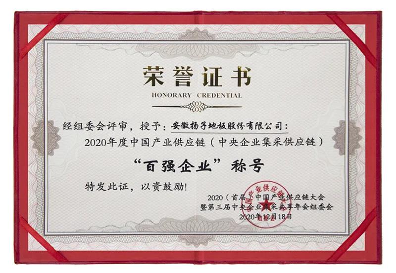 - 2020年度中國產業供應鏈“百強企業”稱號 2021-01-04