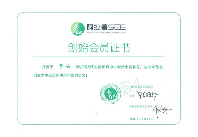 - 阿拉善SEE創始會員證書2016 2020-10-12